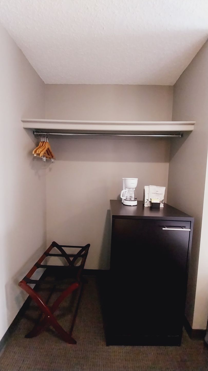 The Family Rooms feature 1 King and 2 Single beds with a private shower and bathtub combination. They are equipped with a coffee maker, hair dryer, cable TV, mini fridge, free wireless internet access, phones with free local calls, and radio alarm clocks. Iron and ironing board are available on demand, please contact the Hotel front desk. Please note all the family rooms are located at the back of the hotel.