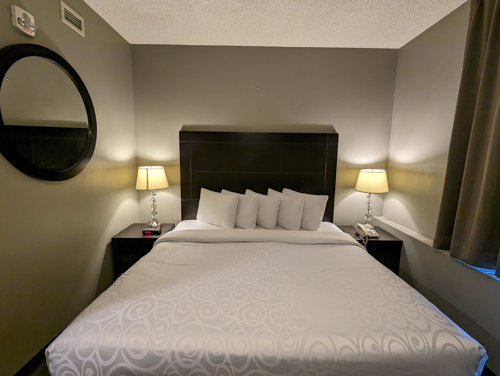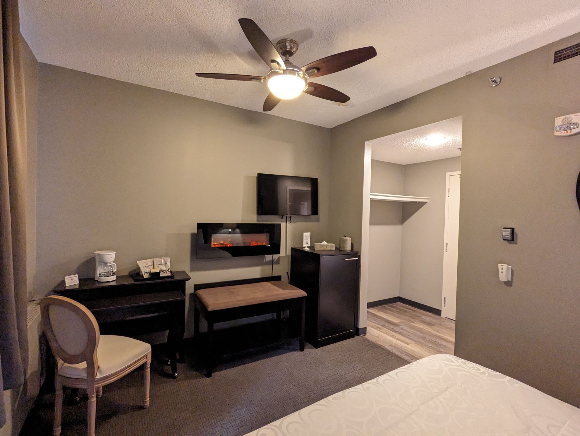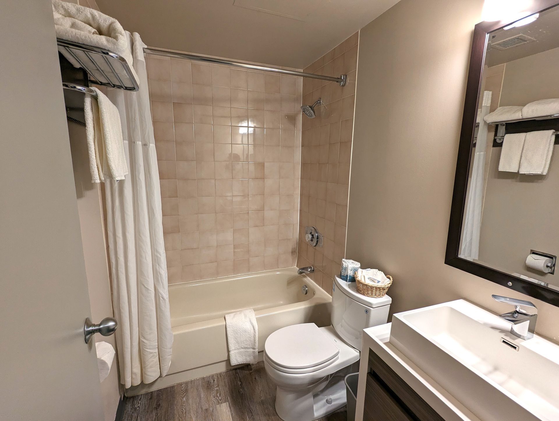 Our spacious rooms feature a comfortable King bed and a convenient pull-out sofa bed, making them ideal for families or groups. You'll have access to a private tub and shower, allowing you to unwind and refresh after a day of exploration. Iron and ironing boards are available upon request.
